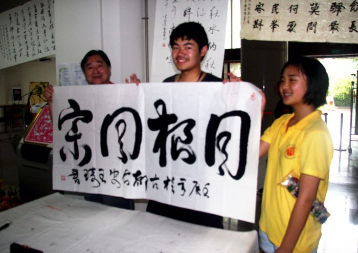中共陕西省委政研室特约研究员、著名书法家、陕西省侨办联经处处长王琦先生在为这些海外青少年表演书法,他挥洒着汗水为孩子们写了十几幅“同根同宗”,又写了“鹏程万里”,当陕西电视台记者问及王琦先生为什么要写“同根同宗”时,王琦先生回答说:“习近平副主席在2010年中国寻根之旅大会上讲过,中华民族历来有着浓厚的故乡故土观念,认祖归宗是中华儿女重要的文化品格。海外中华儿女到中国寻根说明大家对祖籍国有强烈的亲近感,团结统一的中华民族是海内外中华儿女共同的根。所以,作为侨务工作者来讲,我给孩子们写“同根同宗”有其更深远的意义。”