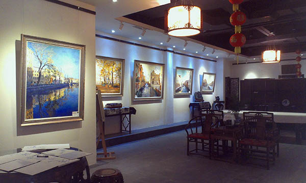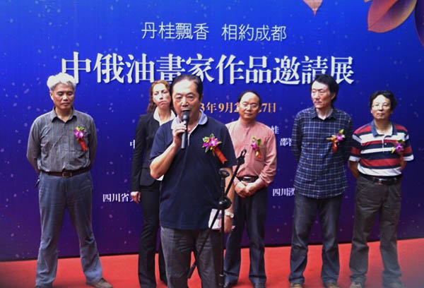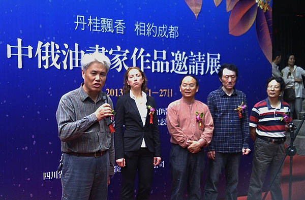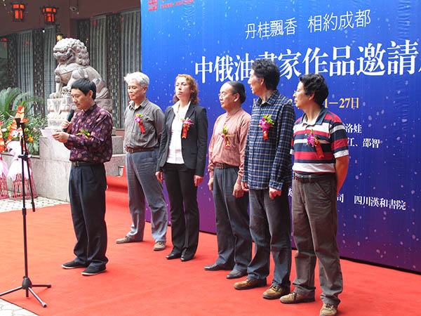 金秋时节,丹桂飘香。为增进中俄两国人民之间友谊,促进文化艺术交流,由四川省美术家协会、四川汉和文化有限公司联合举办的“中俄油画家作品邀请展” 于2013年9月21日至9月27日在汉和书院举行,为金秋的蓉城画坛增添了一道新的风景。!四川省文化厅原副厅长张在德到场祝贺,成都市美协领导及各界人士200余人参加了开幕式。 应邀参加本次展览的有俄罗斯圣彼得堡美术家联盟理事、俄罗斯归家博物馆特聘画师、俄罗斯当代现实主义油画界具有代表性的女画家—莉莎•米哈伊洛娃女士的精品,也有本土实力派著名画家、中国美术家协会会员萧继东、陈登木、宋志江和四川美术家协会会员邵智四位先生的力作。她(他)们同是表现大自然的具象主义画家,也是现实主义艺术的守望者。展出的49幅作品清新自然、色彩明亮,雄浑大气、拙朴浑厚,多角度地展示了中俄艺术家对家园的眷恋和对美好生活追求的精神风貌,充分抒发了热爱生活,热爱大自然,歌颂生命的炽热情怀。 莉莎•米哈伊洛娃是俄罗斯历史上国家博物馆为艺术家举办个人画展的最年轻的一位艺术家。近十年来她应邀在意大利、德国、法国、西班牙、瑞典等国举办个人画展,得到了画界同行及当地群众广泛的赞誉。此次是她首次到中国成都与本土画家联合办展。邀请展开幕的当天下午,莉莎•米哈伊洛娃参加了成都油画界的学术研讨会,与20多位同仁一起就油画艺术的现状与发展等问题进行了交流。