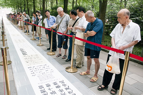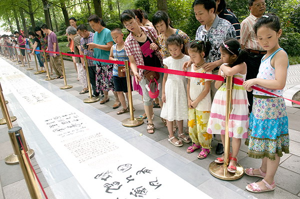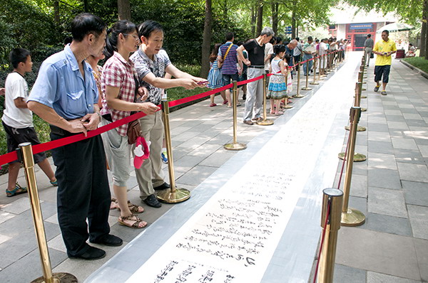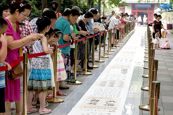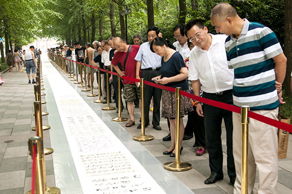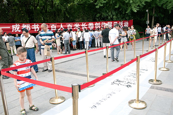 “中国梦”成都书法百人百米长卷创作展示活动在人民公园举行 (此长卷由福宝斋书画装裱广场装裱)