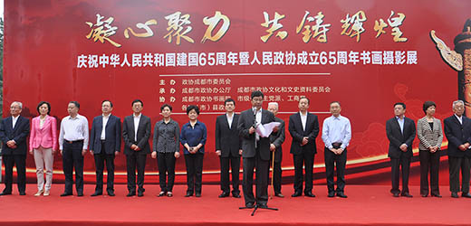 9月23日,“凝心聚力 共铸辉煌”——庆祝中华人民共和国建国65周年暨人民政协成立65周年书画摄影展在成都怀古堂开幕。