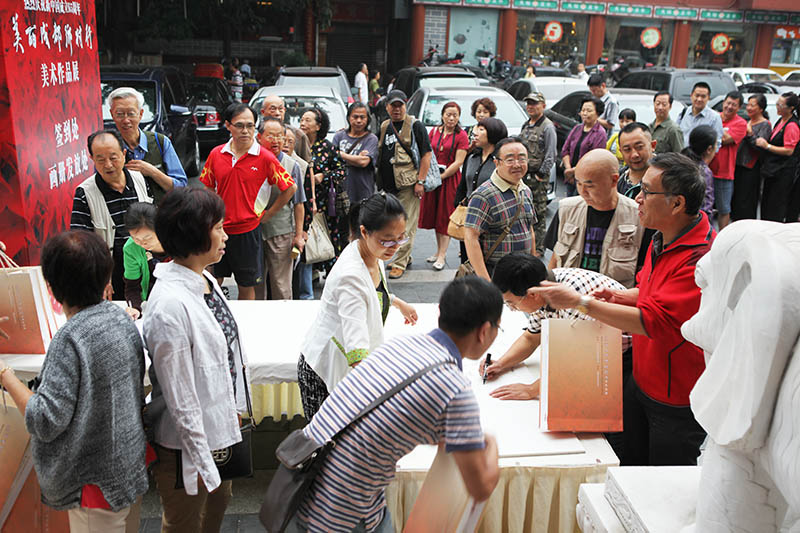 开幕式后福宝斋文化传播公司经理向运华、向运成与部份老师合影