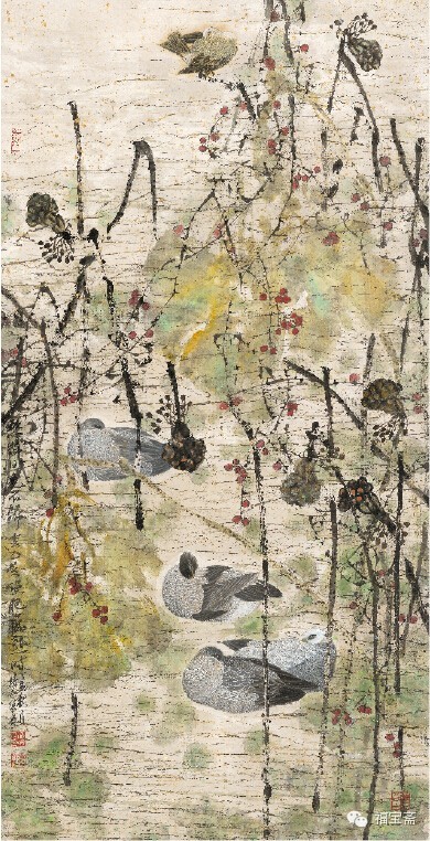 憨鸭日晚不归去 137.8cm×70cm 纸本 2007年
