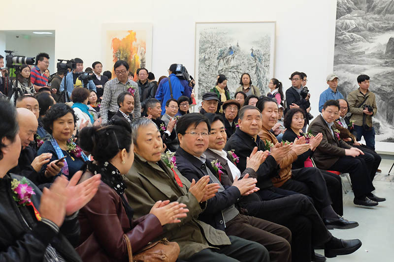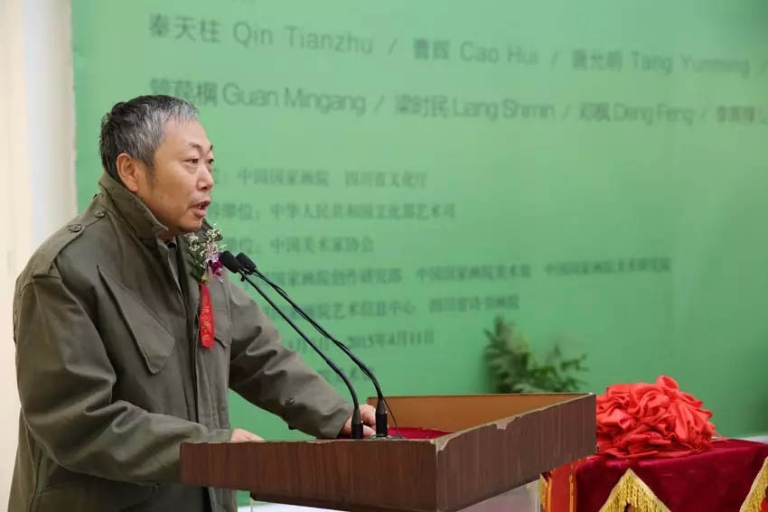 由中国国家画院、四川省文化厅主办,中国国家画院创作研究部、中国国家画院美术馆、中国国家画院美术研究院、中国国家画院艺术信息中心、四川省诗书画院承办的“新中国美术家系列·四川省中国画作品展”于2015年4月3日上午10:30分在中国国家画院美术馆隆重举行。开幕式由中国国家画院常务副院长卢禹舜主持,文化部艺术司副司长诸迪,原国家中央编办副主任王澜明,中国国家画院院长、中国美术家协会副主席杨晓阳,中国美术家协会副秘书长陶勤,中国国家画院副院长张晓凌、张江舟、赵卫、范扬,四川省文化厅艺术委员会主任、四川省诗书画院副院长胡继先,四川省文化厅副厅长窦维平,四川省文联党组副书记、四川省诗书画院副院长邓涛,北京画院常务副院长袁武,中国国家画院研究员张道兴、刘曦林、王镛、満维起、纪连彬、何加林、孔紫、林荣生等300余人出席开幕式。 经“新中国美术家系列·四川省国画作品展”筹备工作组、四川省诗书画院艺委会推荐,中国国家画院展览艺委会终评,精选出秦天柱、唐允明、曹辉、叶瑞琨、姚思敏、管苠棡、梁时民、李青稞、邓枫、刘浪涛、刘刚等四川省11位1949年以后出生的国画家的110件作品。 四川省福宝斋文化传播有限公司向运华、向运成两位经理出席了北京的开幕式。由该公司出版的《新中国美术家系列·四川省国画作品展》作品集大型画册,以其新颖大气、庄重现代的设计风格和高品质的印刷质量,受到现场嘉宾的高度赞评,被杨晓阳先生肯定为此次系列画展的标准画册模式。 展期将持续至4月10日。