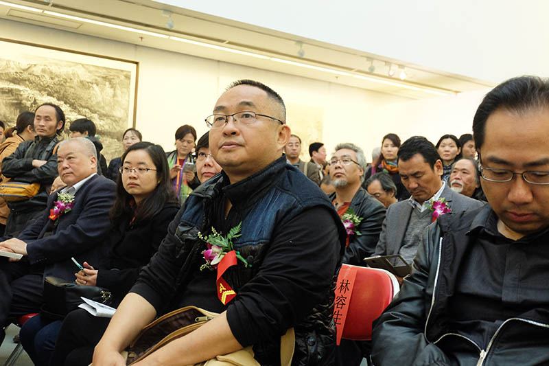 参展艺术家叶瑞昆(右一)和管苠棢先生(左一)在开幕式上