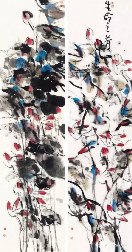 董小庄 生命之荷 136cm×34cm×2 国画