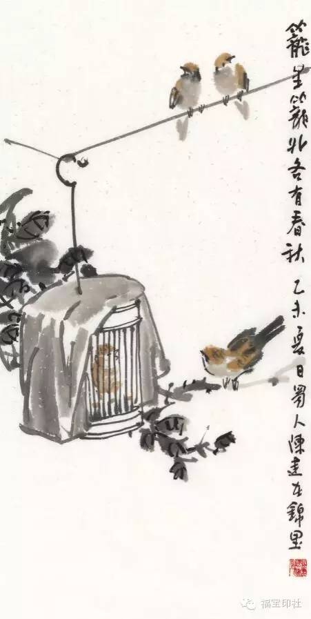 陈建 笼里笼外各有春秋 68cm×34cm 国画