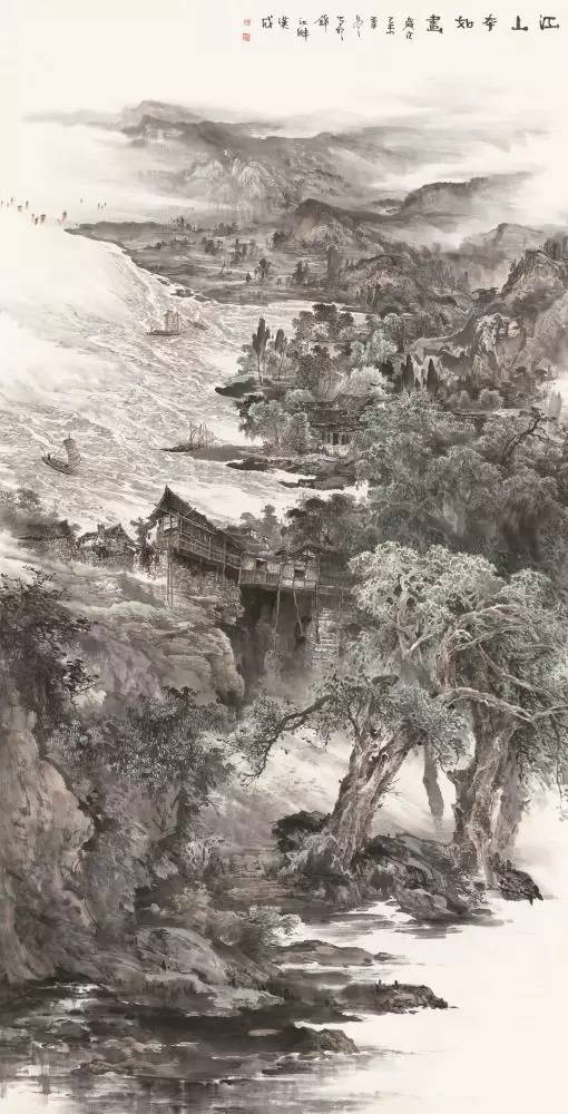 入选作品:罗汉成《江山本如画》244cm×125cm