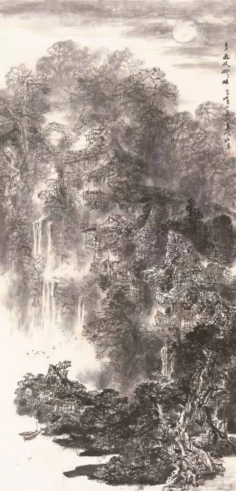 入选作品:林茂森《古寨写意图》206cm×72cm