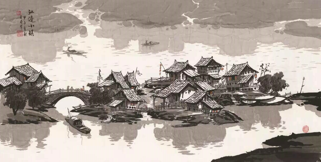 特邀作品:张跃进《古镇岁月》68cm×138cm