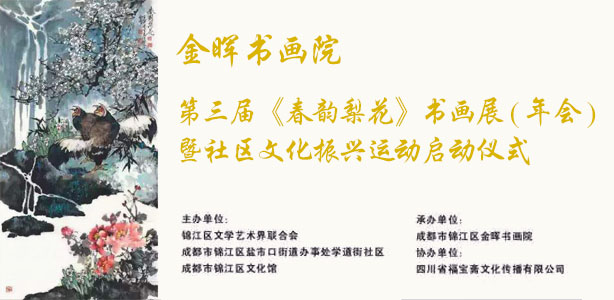 金晖书画院第三届《春韵梨花》书画展(年会) 暨社区文化振兴运动启动仪式将2016年3月23日在锦江区文化馆开幕