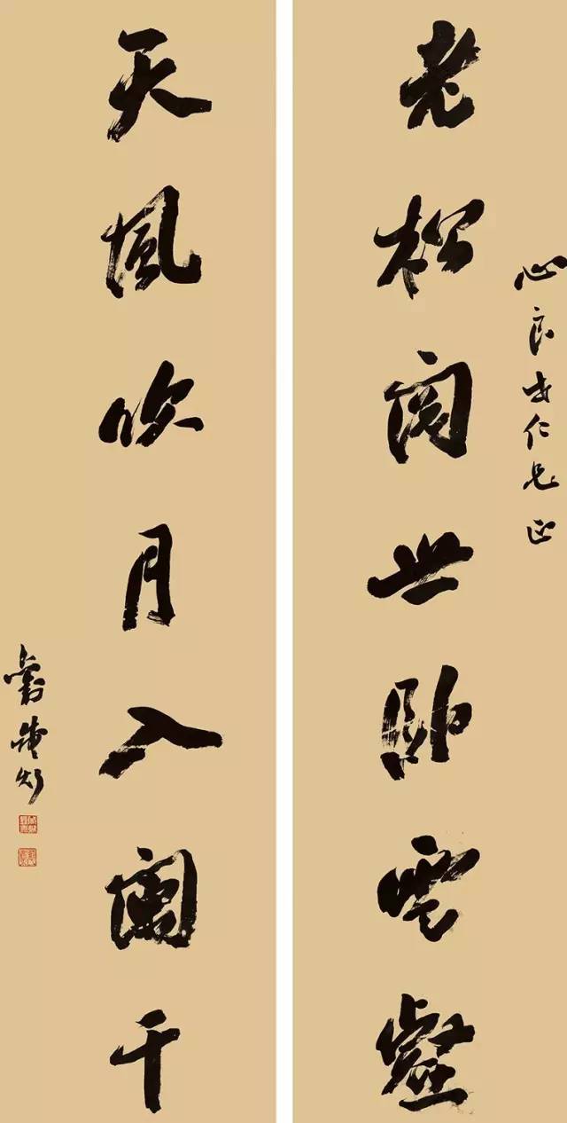 鉴泉先生 老松·天风联 149cm×36cm×2
