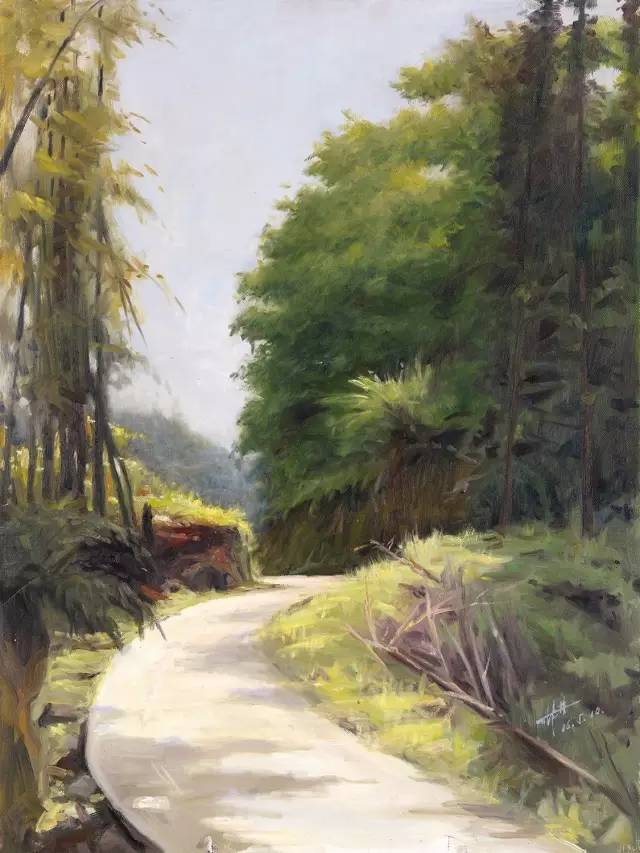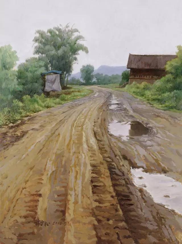 油画作品:林雪松《泥泞的小路》60cm×80cm