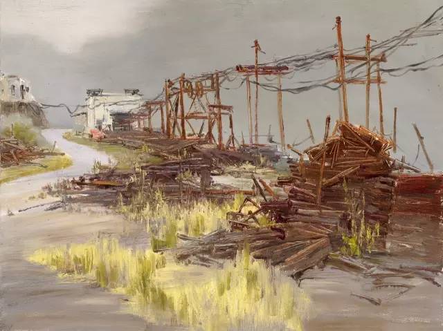 油画作品:邓平《东方红煤矿遗址》60cm×80cm