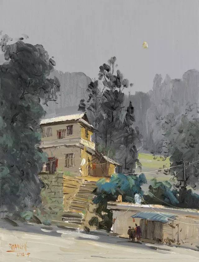 油画作品:章肇方《暮色人家》60cm×80cm