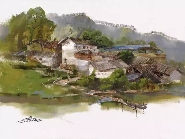 油画作品:邓平《蔡家山寨》60cm×80cm