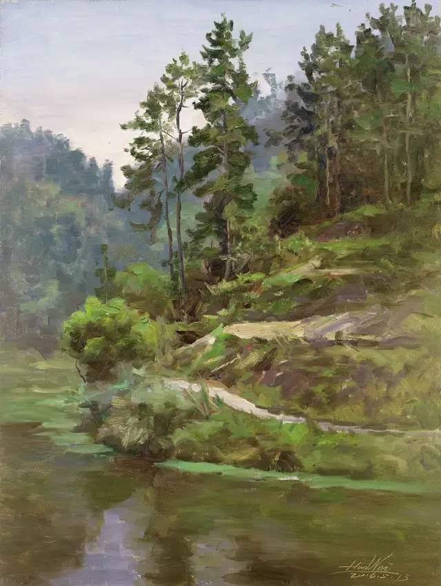 油画作品:王龄《江河岸》60cm×80cm