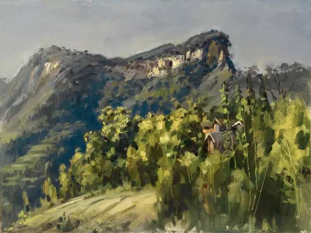 油画作品:黎建伟《山坳巅上》80cm×60cm