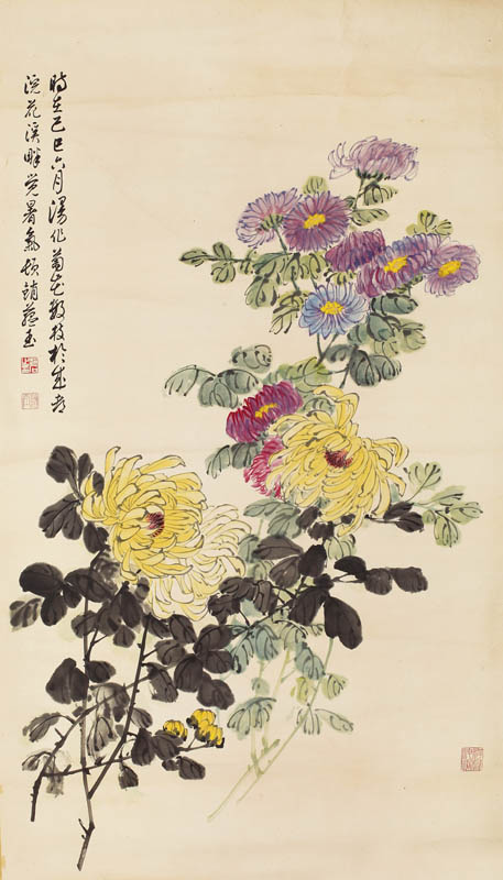 款识:时在己巳六月漫作菊花数枝于成都浣花溪畔觉暑气顿销,蕴玉。
