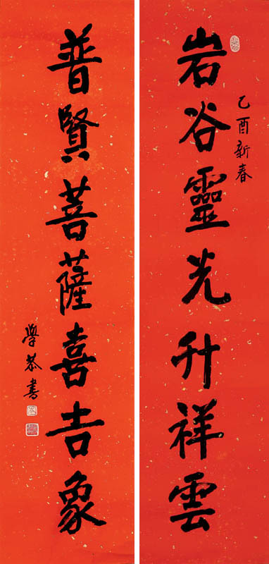 款识:乙酉新春,学恭书。