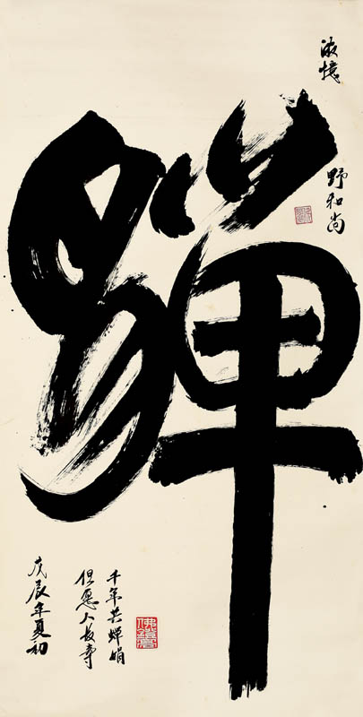 款识:戊辰年夏初,浓忆野和尚,但愿人长寿,千里共婵娟。