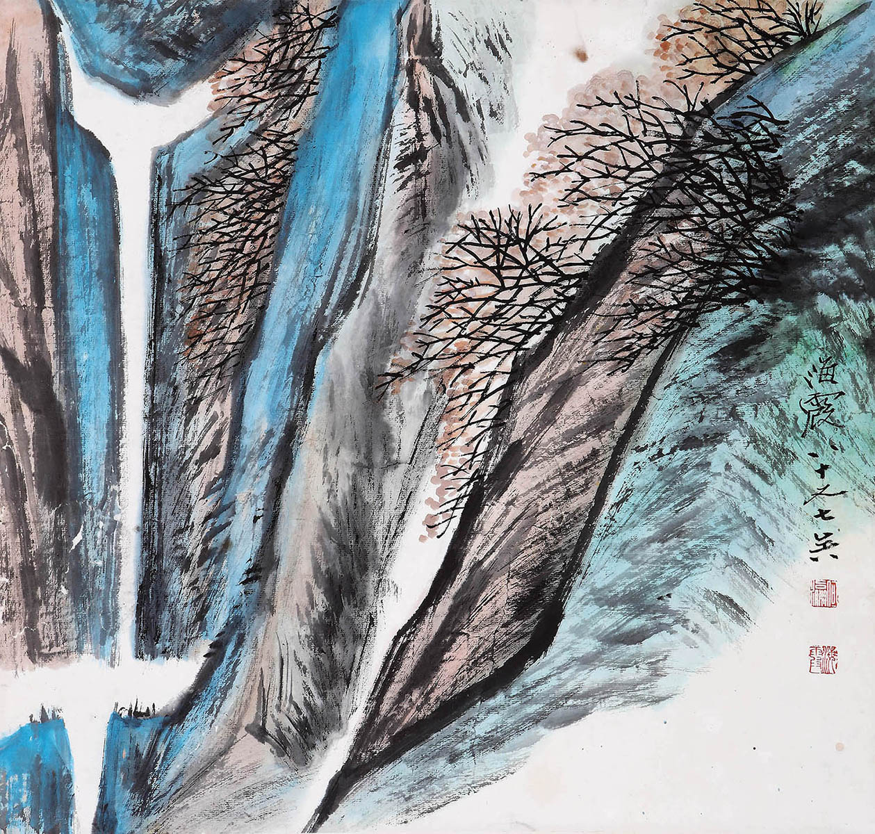 简介:何海霞,(1908-1998) 初名何福海,字瀛,又字登瀛;1934年为张大千入室弟子;1936年曾与齐白石、张大千、于非闇合开画展;山水入古而化,融合水墨丹青,颇得大千秘奥;构图能迭出新意;和赵望云、石鲁合誉为“陕西三杰”,共同创立“长安画派”;曾任陕西国画院副院长及名誉院长、中国国画研究院研究员等职务。
