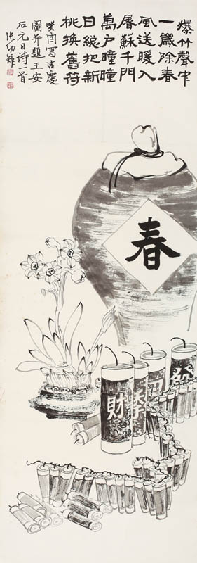 款识:癸酉写吉庆图并题王安石元日诗一首,张幼矩。