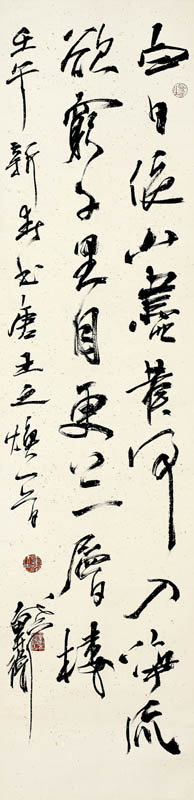 款识:壬午新春书唐王之涣一首,戴卫。