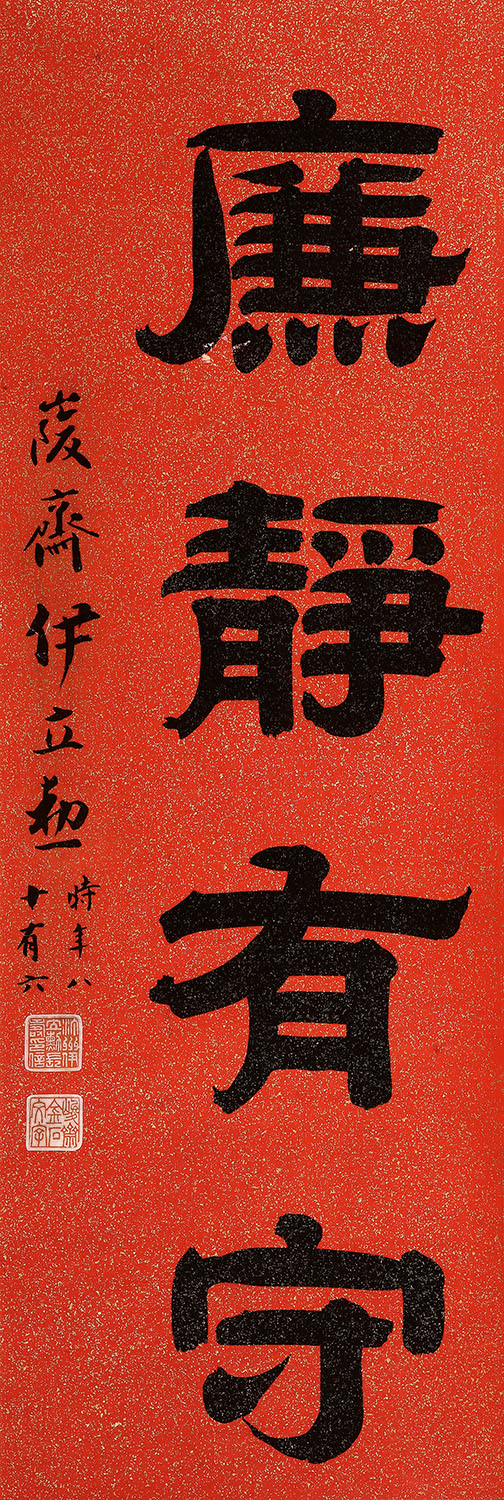 简介:伊立勋(1856-1942):字熙绩,号峻斋、石琴,别署石琴老人、石琴馆主,室名石琴馆,福建宁化人,伊秉绶后人。清末民初书法家。清光绪无锡知县,民国时期著名书法家,真草篆隶无所不能,功力深厚。生前辑刊有《石琴吟馆印存》等;所临《天一阁本石鼓文》、《长垣本华山石》、《北宋本多宝塔》、《孙过庭书谱》曾由扫叶山房刊印行世。著《石琴老人八十自述诗》。