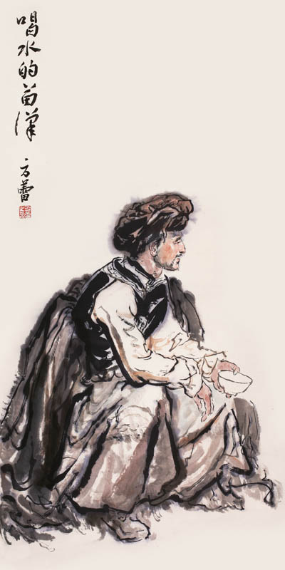 名称:《方蕾书画集》喝水的苗汉(1998年)