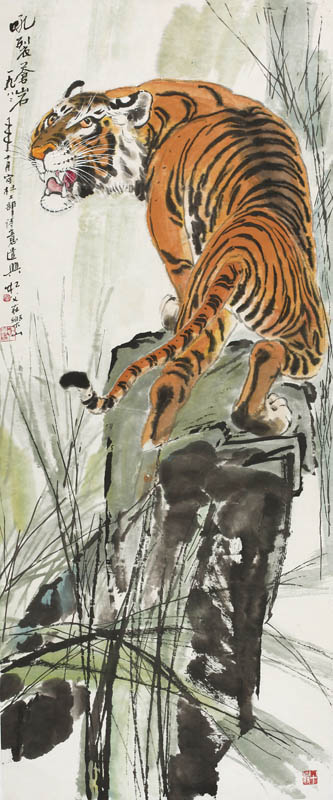 款识:吼裂苍岩。一九八二年十月写杜工部诗意遣兴,松父在乐山。