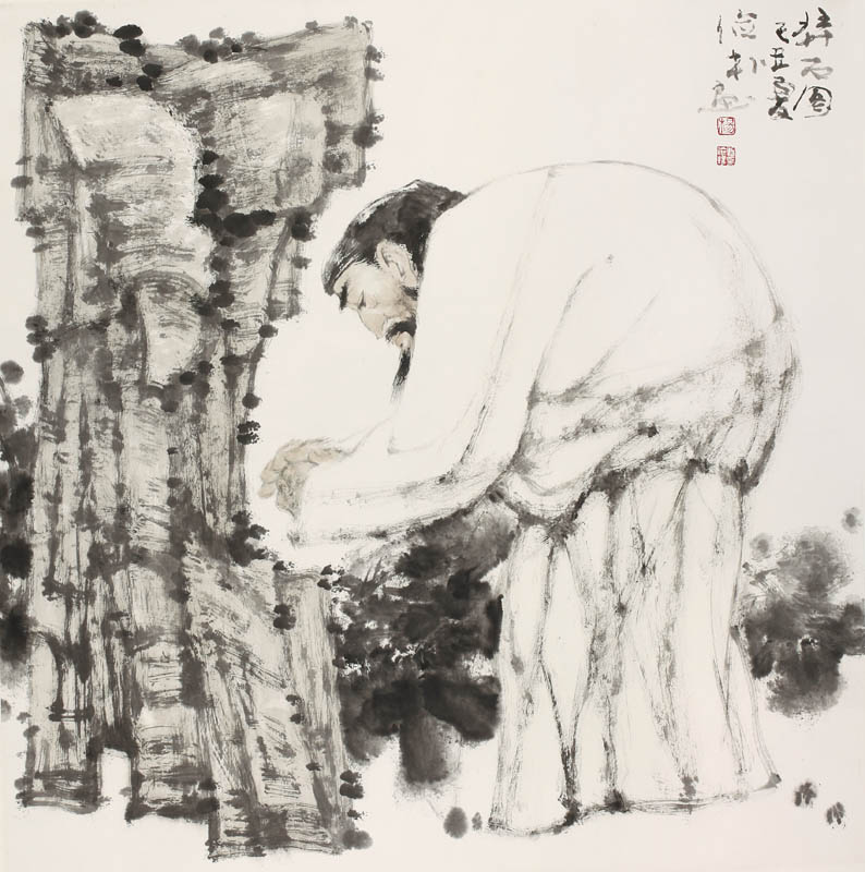 款识:拜石图。己丑夏俭朴画。