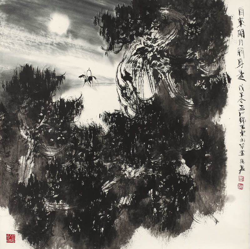 款识:自来明月前身是。戊子冬画于锦里东山草堂。其鑫。