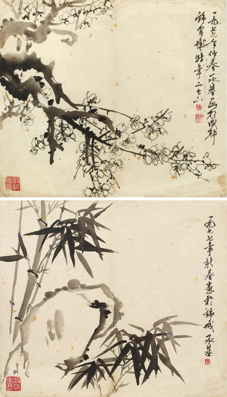 款识:1、一九七七年新春画于锦城,承基;2、一九七七年仲春承基画于成都锦官城时年二十六。