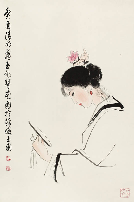 款识:癸酉清明蕴玉作簪花图于锦城玉园。