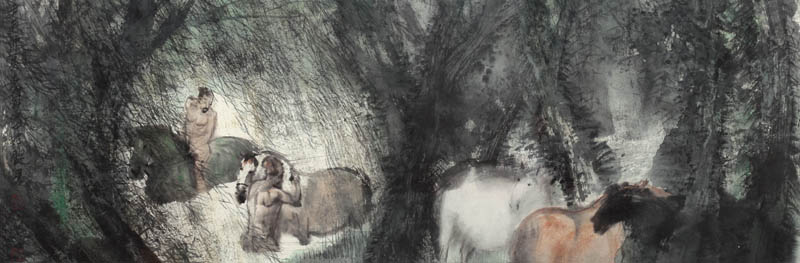 简介:彭先诚(b.1941):四川成都人。四川省诗书画院国家一级美术师,中国美术家协会会员,四川美术家协会理事。擅长没骨点染破墨法,善画鞍马人物。作画重于直觉,注重偶然的水墨关系,其作品笔精墨妙,格调清新,风格独异。