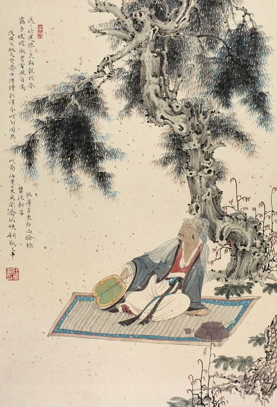 任重现为宁夏美术家协会会员、银川美术家协会理事,出版有《任重工笔高士作品选》、《任重扇面作品集》、《任重花鸟画集》等。 款识:迈迈时运,穆穆良朝。袭我春服,薄言东郊。山涤余霭,宇暧微霄。有风自南,翼彼新苗。戊寅九秋之望斋中得读彭泽令此句,因为此图。任重千里无闲斋纸帐铜瓶之中。 备注:本拍品提供者曾与倪志刚、杨守年两先生一道,从任重本人处获得该作品,时任重居龙泉。来源清晰有序。