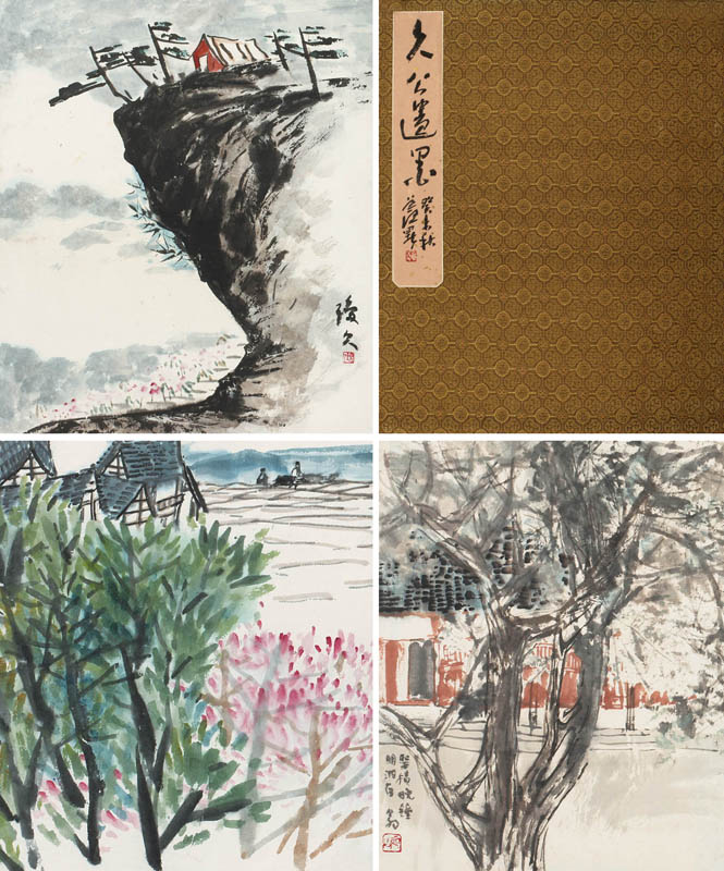 款识:封面题签:久公遗墨,癸未秋,道熙题。内页:1、琼久;2、癸未,道熙;3、癸未,道熙;4、九公;5、琼久;6、癸未,道熙;7、嘉州小景,甲辰八月;8、癸未,八十三叟道熙;9、癸卯夏,琼久;10、题玖翁写松:高木大有黄公望倪云奇趣,而阂赅处显现恢弘,正是自有法度。丙子夏初天开识;11、琼久;12、丙子之秋月于古嘉州,天开;13、琼久此画余所见为第一幅也,癸未道熙;14、琼久;15、九公;16、琼久;17、琼久;18、圣积晚钟,明波存,久翁。