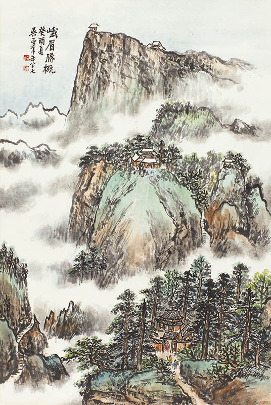 备注:少见的吴一峰峨眉题材青绿山水精品之作。