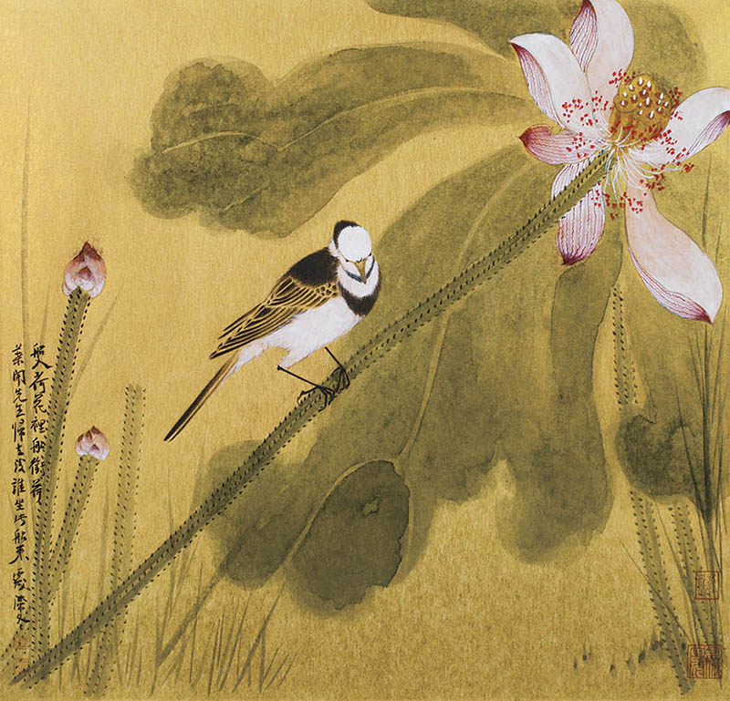 款识:船入荷花里,船衔荷叶开。先生归去后,谁坐此船来。丙戌,滞冬。