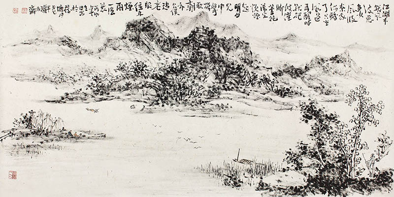 简介:刘三余(b.1969):生于四川邻水,现居成都。师从于著名前辈画家施孝长、冯石甫等先生,擅长山水、人物、花卉,工诗词书法,有“蜀中怪才”之称。尤精于焦墨。现任四川省美协会员、四川省艺术促进会委员、成都市美协理事、成都市政协画院理事,中国画焦墨研究会常务副会长兼秘书长。