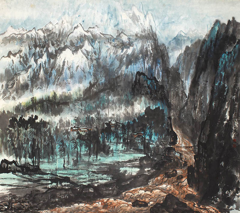 款识:堆金积玉之图。吴一峰金沙江玉龙所见。