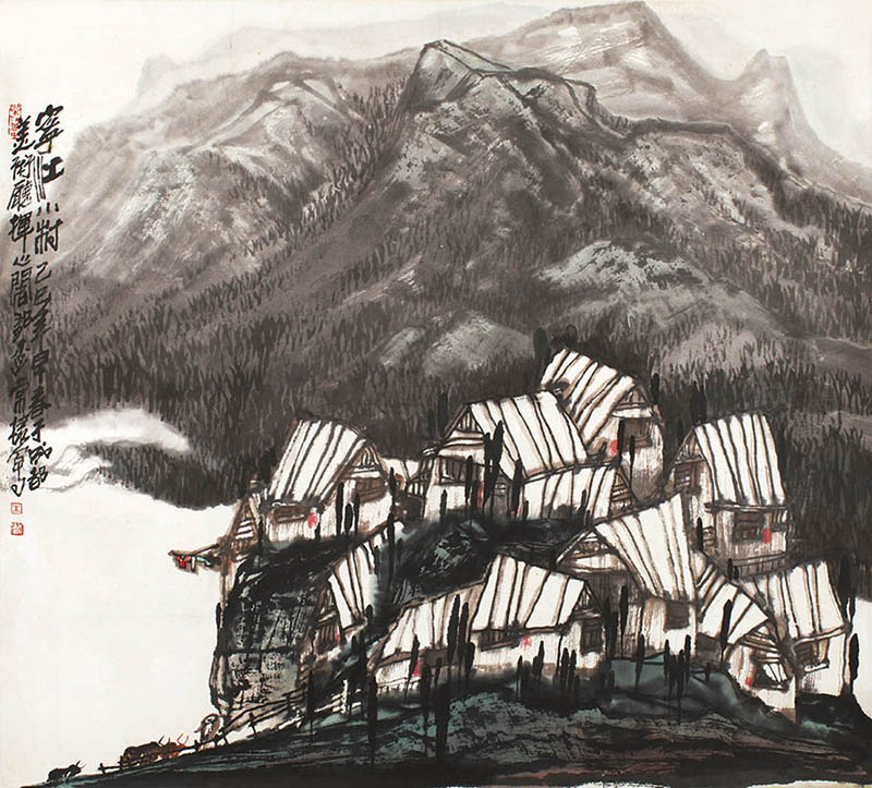 款识:宁江小村。己巳年早春于成都美术厅挥心阁,长棣写。