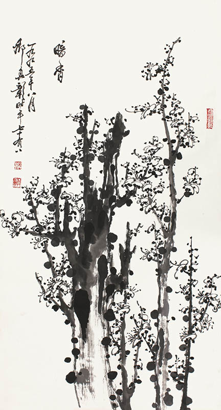 款识:暗香。一九九五年八月邓奂彰时年七十有八。