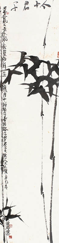款识:个中君子。不是春风不是秋风,新篁初放在夏月中。能驱吾暑,能豁吾胸。君子之德,大王之雄。辛巳春,德扬写。