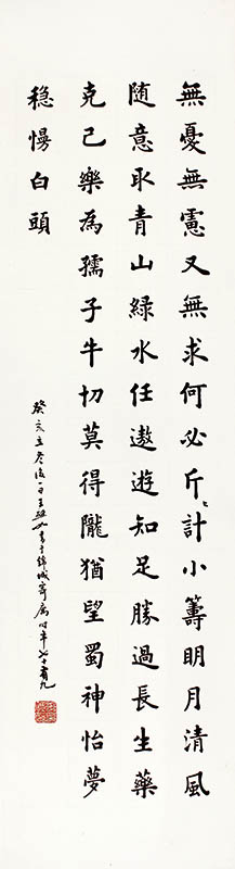 备注: 无忧无虑又无求,何必斤斤计小筹。明月清风随意取,青山绿水任遨游。知足胜过长生药,克己乐为孺子牛。切莫得陇尤望蜀,神怡梦稳慢白头。
