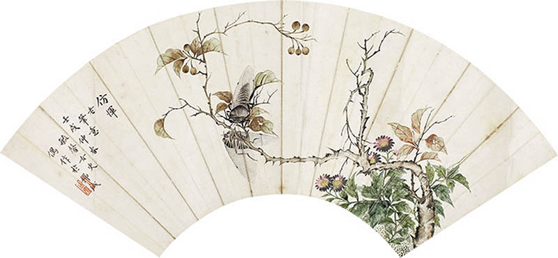 备注:清代女画家所绘扇面,画工极精,局部返铅。