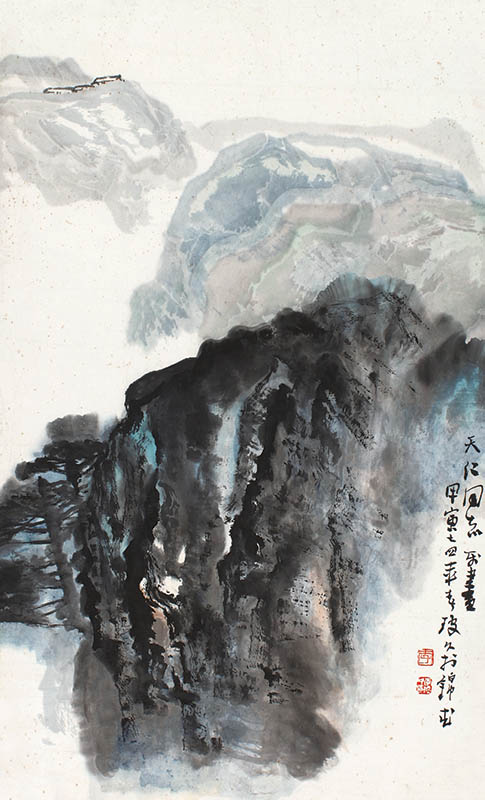 款识:天仁同志嘱画,甲寅七四年春琼久于锦城。