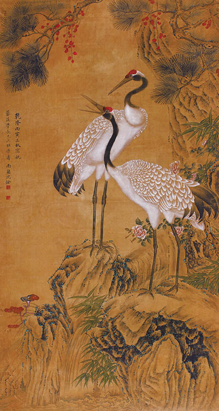 简介:沈铨(1682-1760):字衡之,号南苹,浙江湖州市德清县新市镇(一作吴兴(今浙江省湖州市吴兴区)人。少时家贫,随父学扎纸花。20岁左右,从事绘画,并以此为生。其画远师黄筌画派,近承明代吕纪,工写花卉翎毛、走兽,以精密妍丽见长,也擅长画仕女。创“南苹派”写生画,深受日人推崇,被称为“舶来画家第一”。