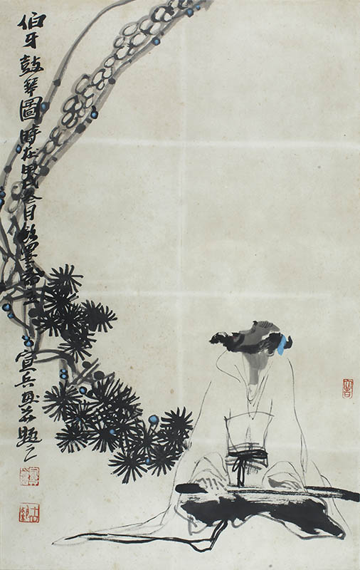 款识:伯牙鼓琴图时在甲戊冬月饮墨斋主宣兵画并题之