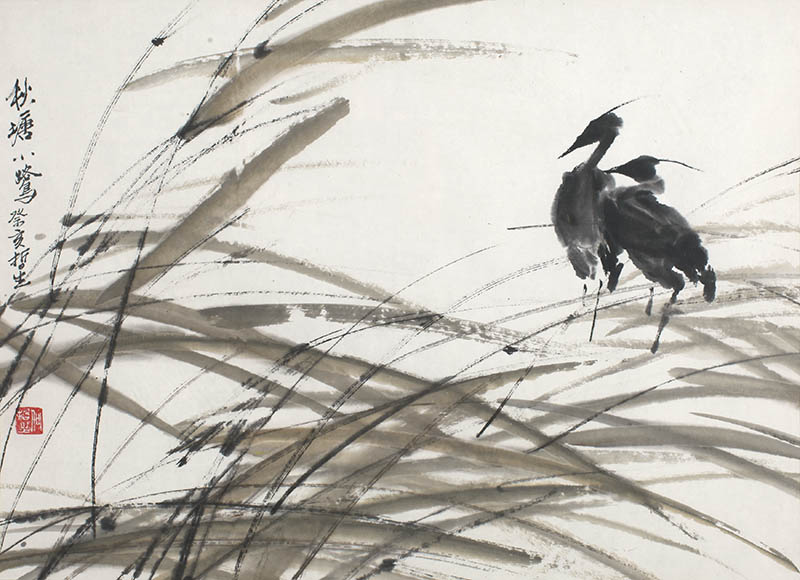 款识:秋塘小鹭癸亥哲生